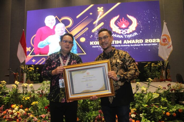 Laga.id, Surabaya – Perkumpulan Angkat Besi Seluruh Indonesia (PABSI) Jawa Timur mendapat predikat sebagai Pengprov Cabang Olahraga (Cabor) terbaik pada gelaran KONI Jatim Award 2023 di Harris Convention Hotel Gubeng, Surabaya, kemarin (18/1/2024).