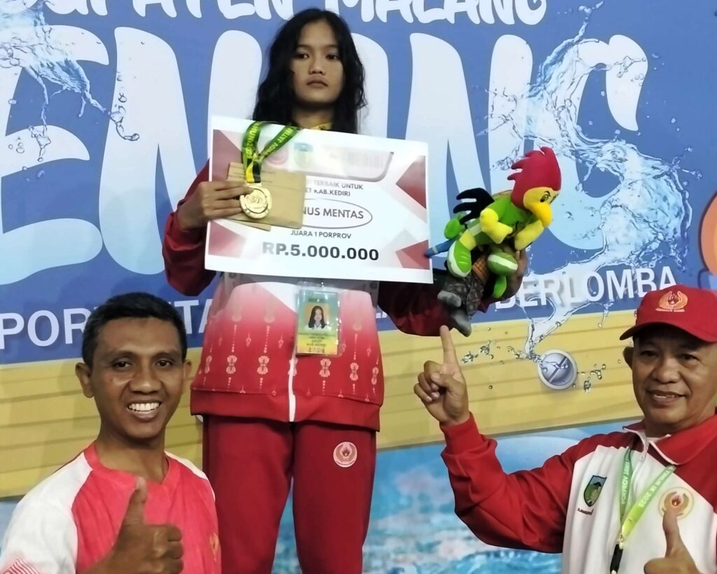 “Medali emas ini adalah bukti bahwa Kabupaten Kediri punya potensi besar di cabang olahraga renang,” jelasnya.